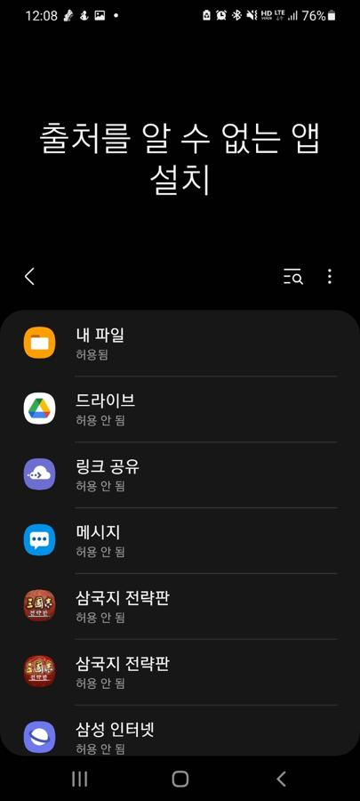 이와 같은 방법을 하면 다음과 같은 화면이 변경됨을 알 수 있습니다. 그럴 경우에, 내 파일에 있는 apk파일등은 설치가 진행이 됩니다.