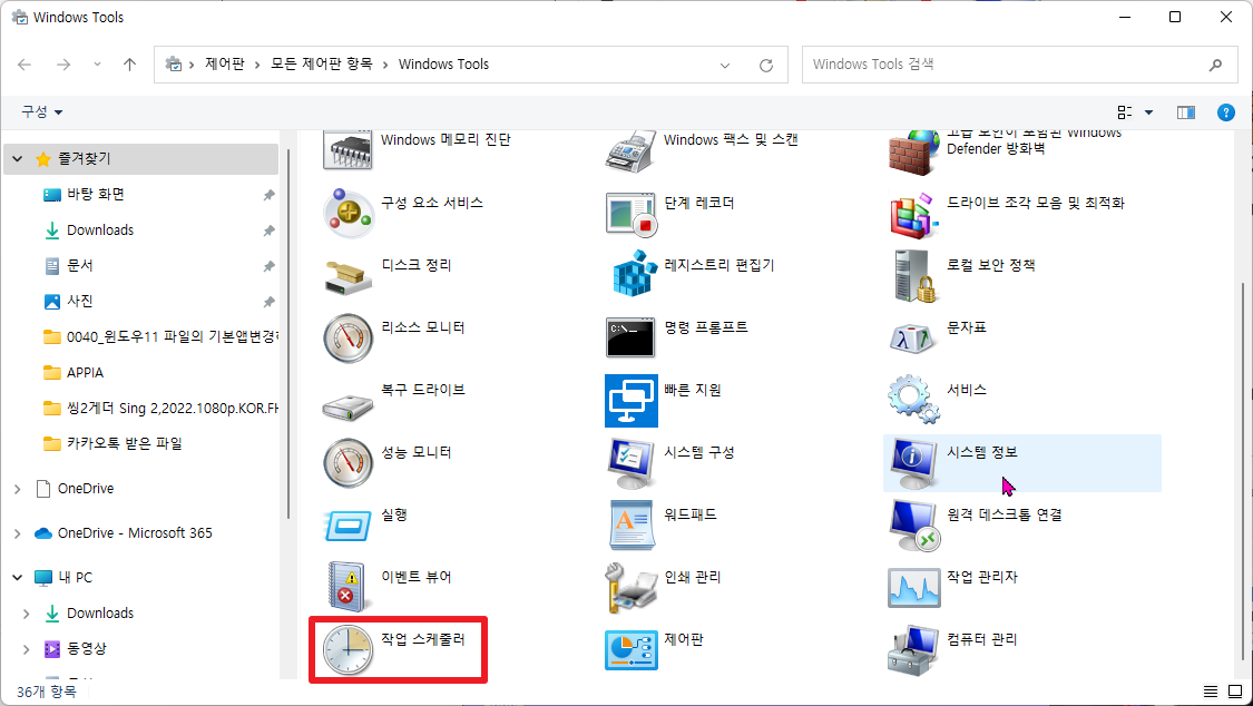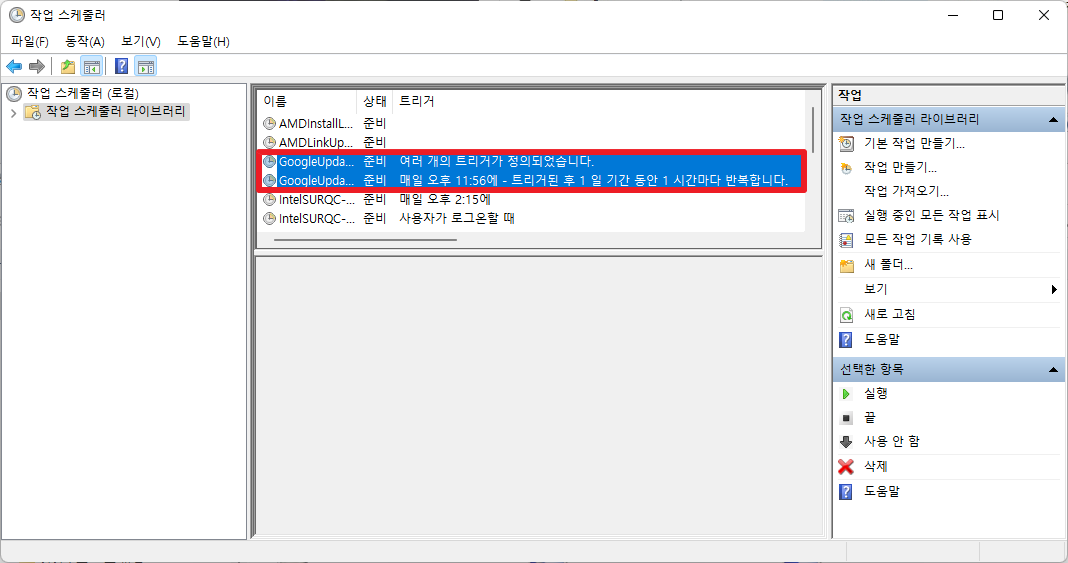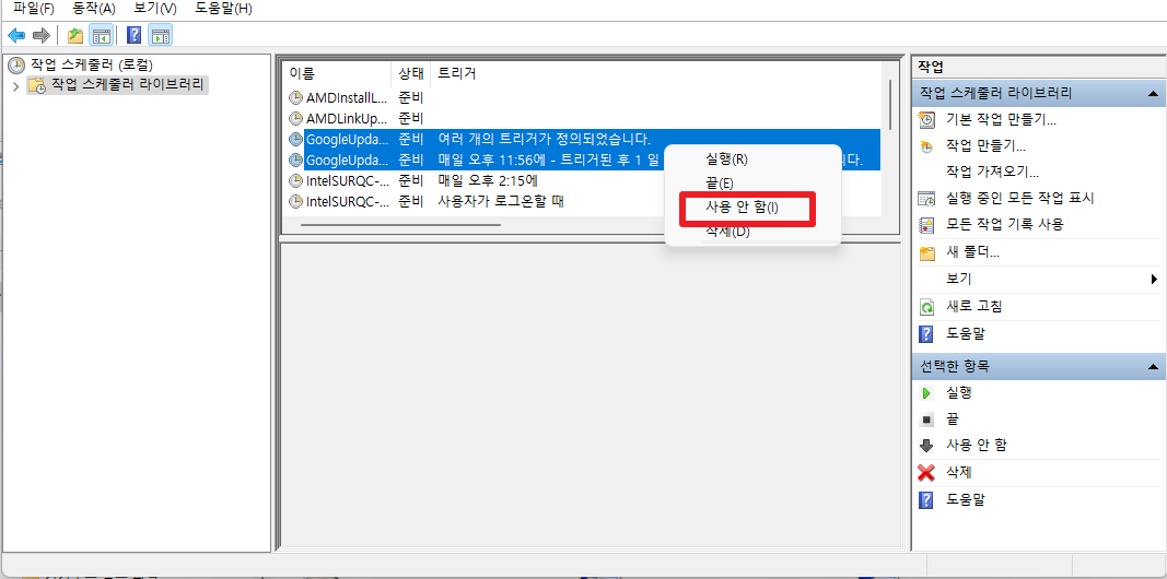 여기에서 [작업 스케줄러 라이브러리]부분을 클릭하여 주시길 바랍니다.