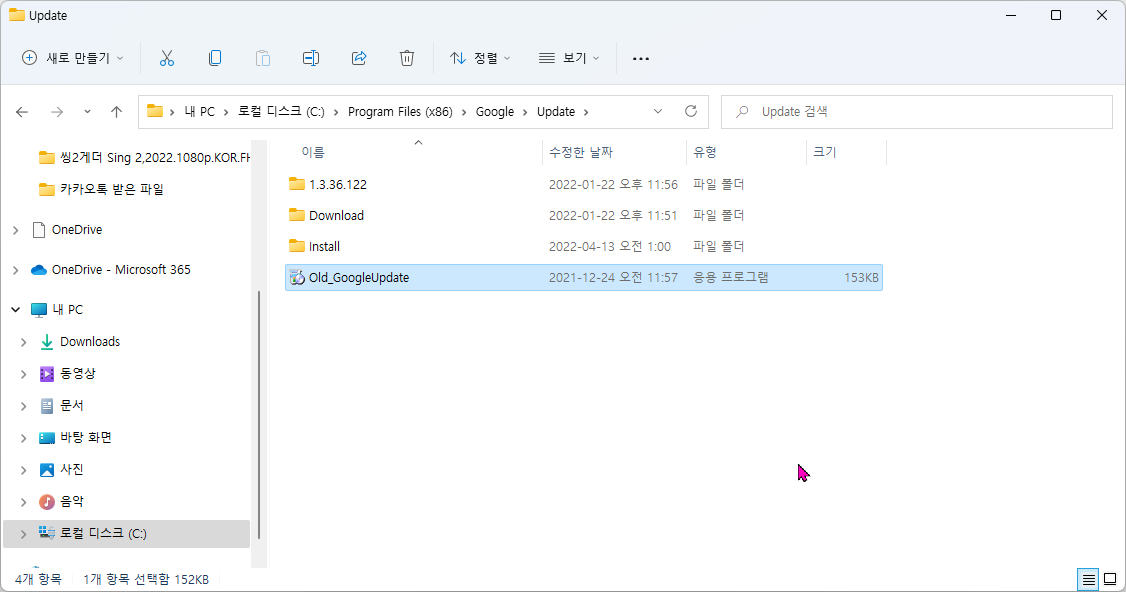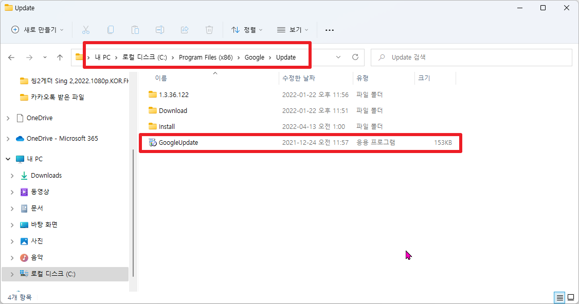 위에서 보이는 바를 복사해서, 사용하시면 C:\Program Files (x86)\Google\Update 과 같은 경로에 업데이트 관련된 파일이 존재할 것입니다.