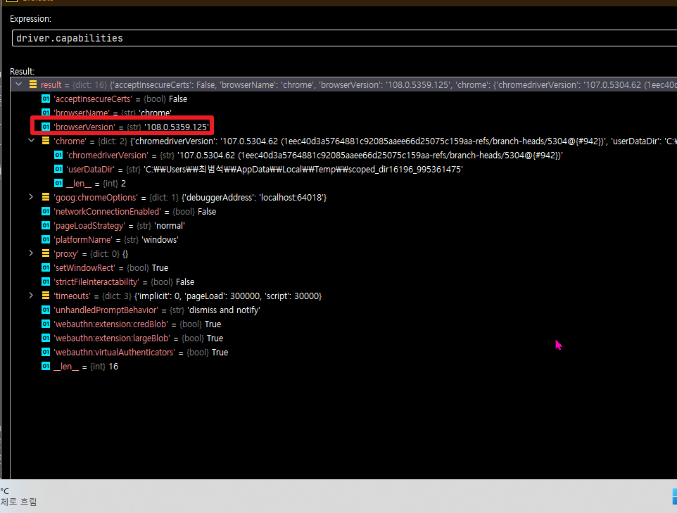 파이썬[Python] selenium의 WebDriver를 이용한 크롬(Chrome)버전 확인하기 본문