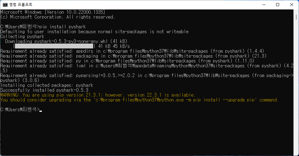 파이썬[Python] Pcap파일 분석을 위한 PyShark 설치하기(pip) 본문