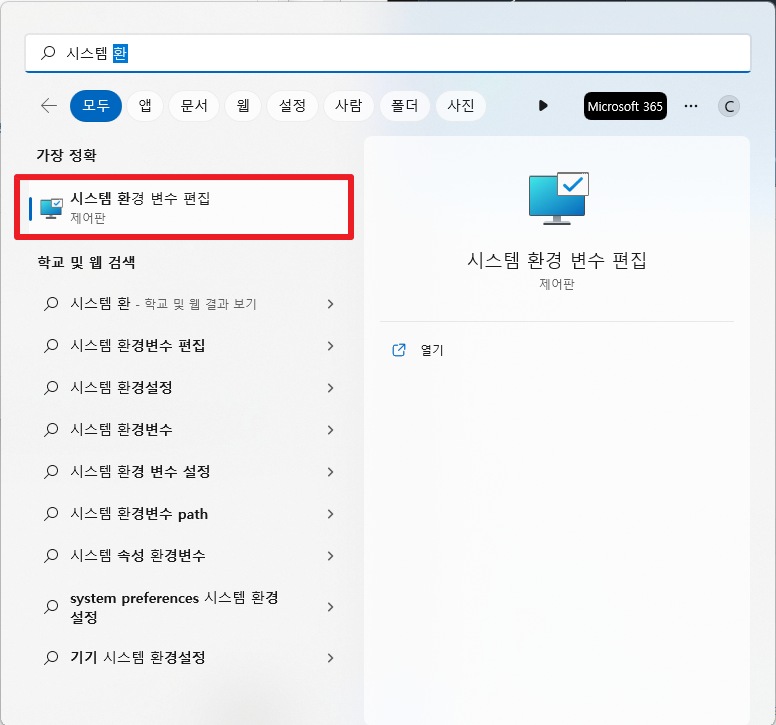 윈도우 메뉴에서 [시스템 환경 변수 편집] 부분을 검색해서 실행해주시길 바랍니다.