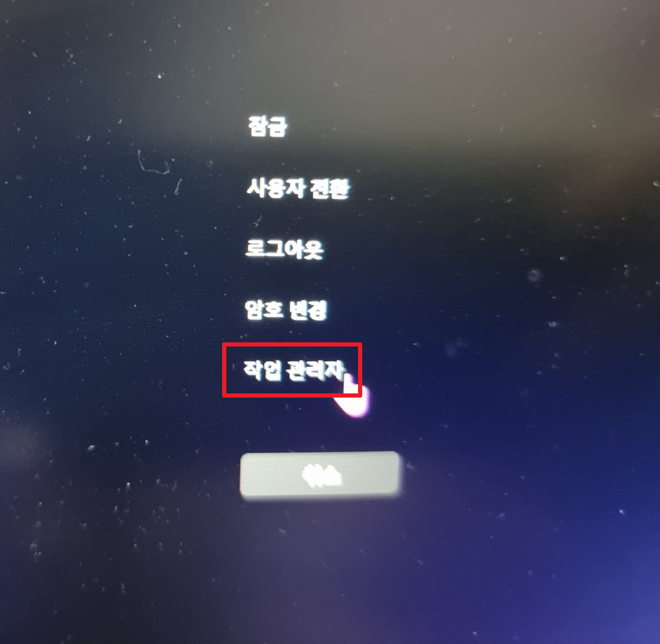 다른 한편으로는 [Ctrl + Alt +del] 키를 함께 눌려서, 아래와 같은 화면을 나타나게 하는 것입니다. 여기에서 [작업 관리자] 부분을 클릭하여 작업관리자를 실행할 수 있습니다.