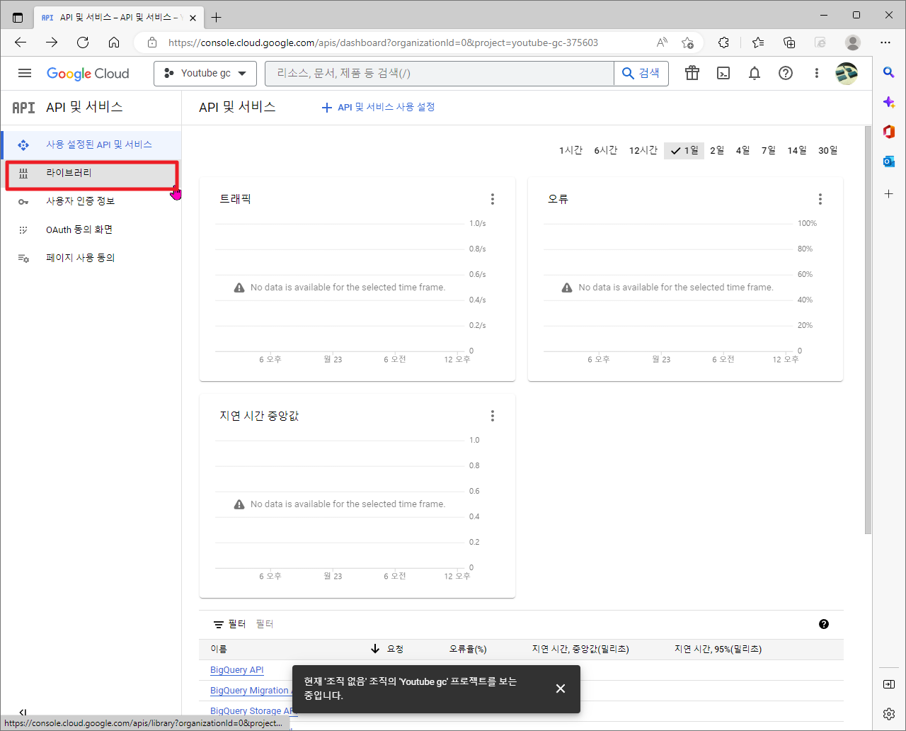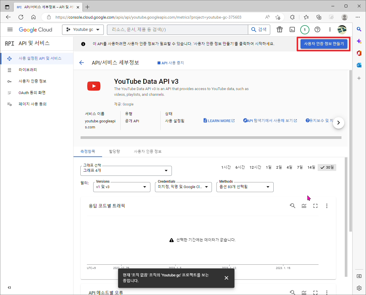 [윈도우11, windows11] 유튜브(YouTube) API 사용을 Google Cloud 에서 사용 권한 발급 받기 본문