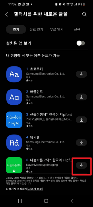 이와 같은 방법으로 안드로이드(Android)의 글꼴을 다운로드 하거나 변경할 수 있습니다.