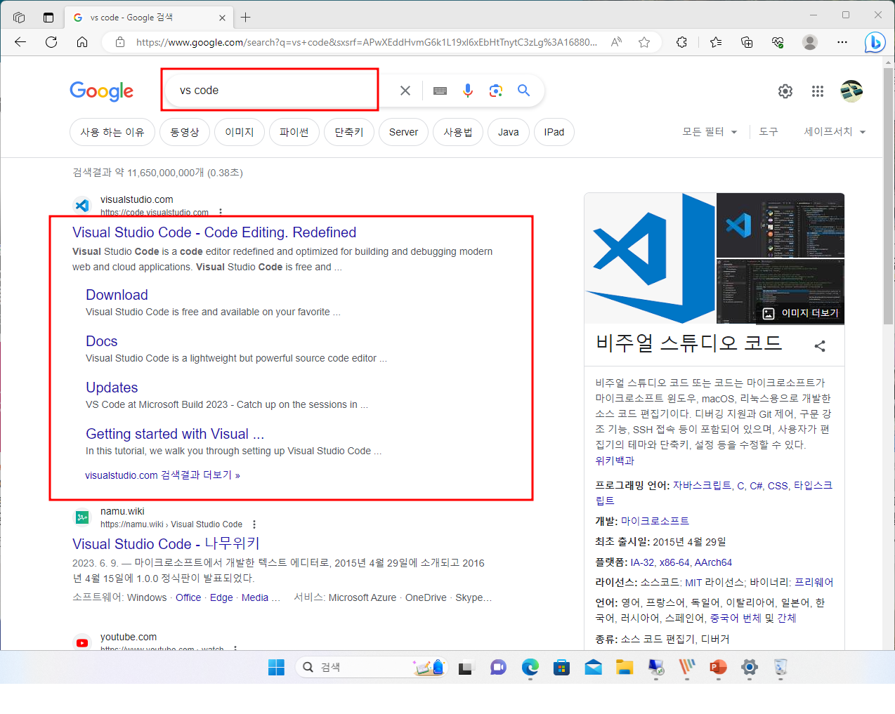 [윈도우11, windows11] Ms vscode 다운로드 및 설치하기 본문