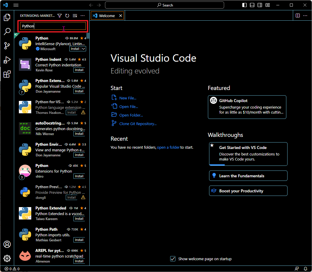 이전 포스팅에서는 MS VS Code을 다운로드 받고 설치하는 방법에 대해서 살펴봤습니다. 실제로, 이 부분을 가지고만 파이썬을 위한 에디터로 사용할 수는 없습니다. 그래서 이번 포스팅에서는 설치된 MS VS Code를 바탕으로 Python을 실행하기 위해서 기본 확장팩(Extension)을 설치하는 방법에 대해서 살펴보겠습니다.