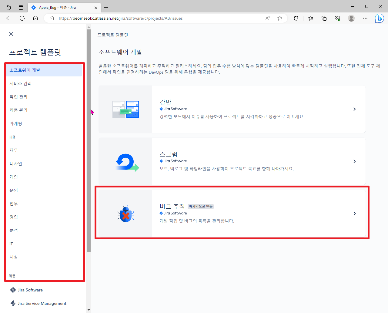 [윈도우11, windows11] atlassian JIRA(지라) 새 프로젝트 만들기(with 버그 추적, Bug Tracker) 본문