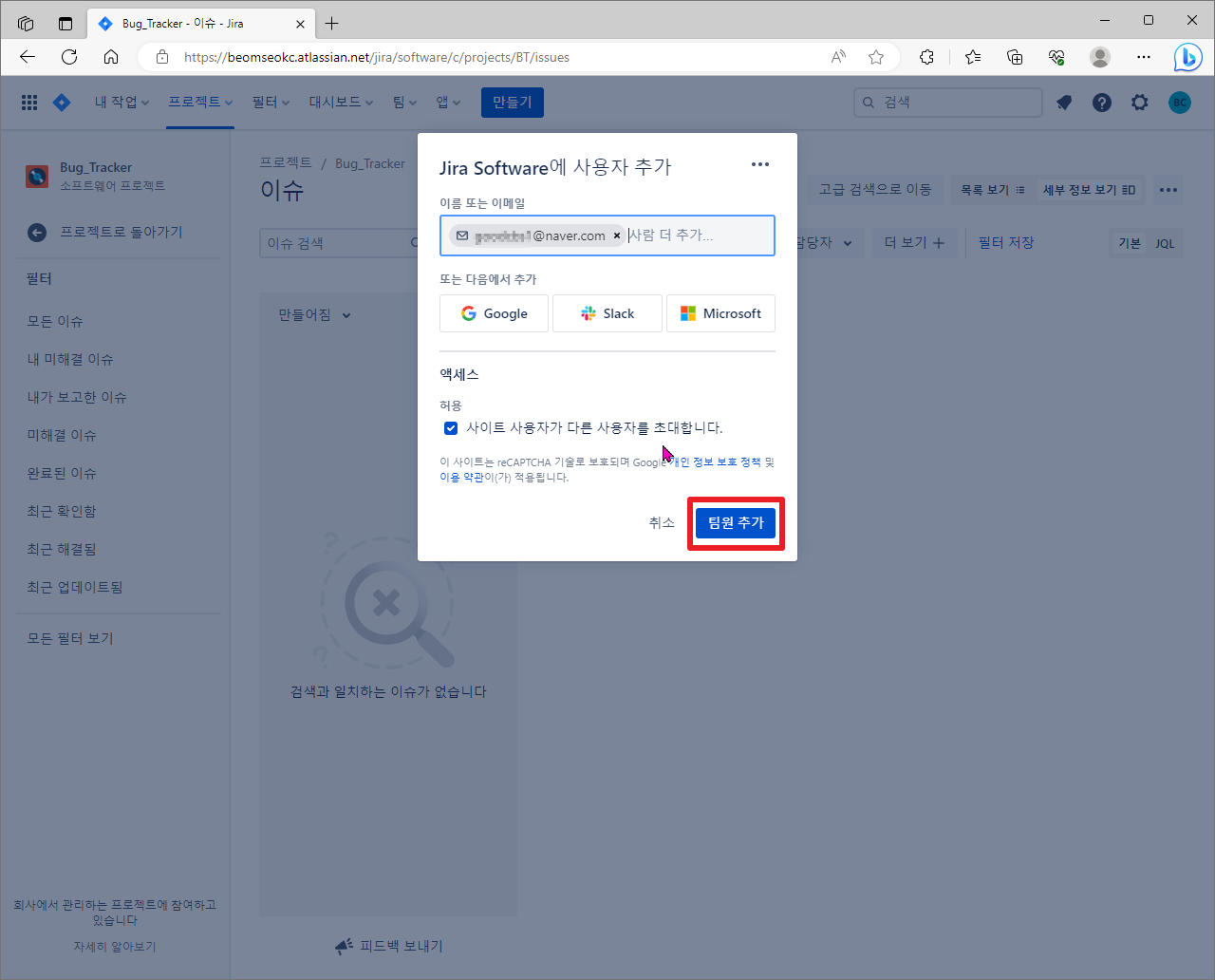[윈도우11, windows11] atlassian JIRA(지라) 프로젝트에 멤버 추가하기