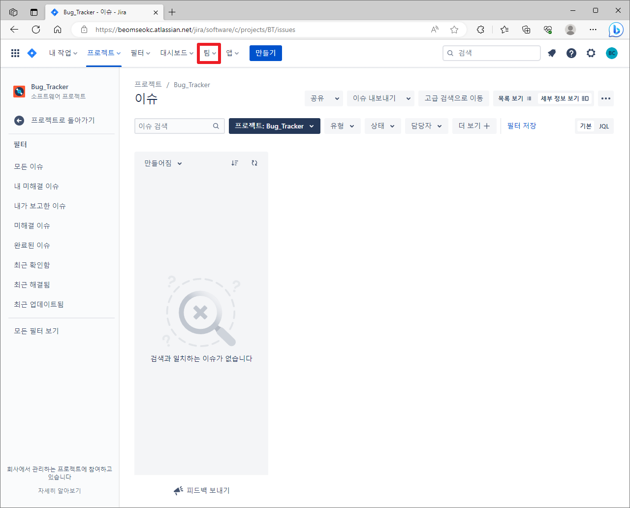 [윈도우11, windows11] atlassian JIRA(지라) 새 프로젝트 만들기(with 버그 추적, Bug Tracker)