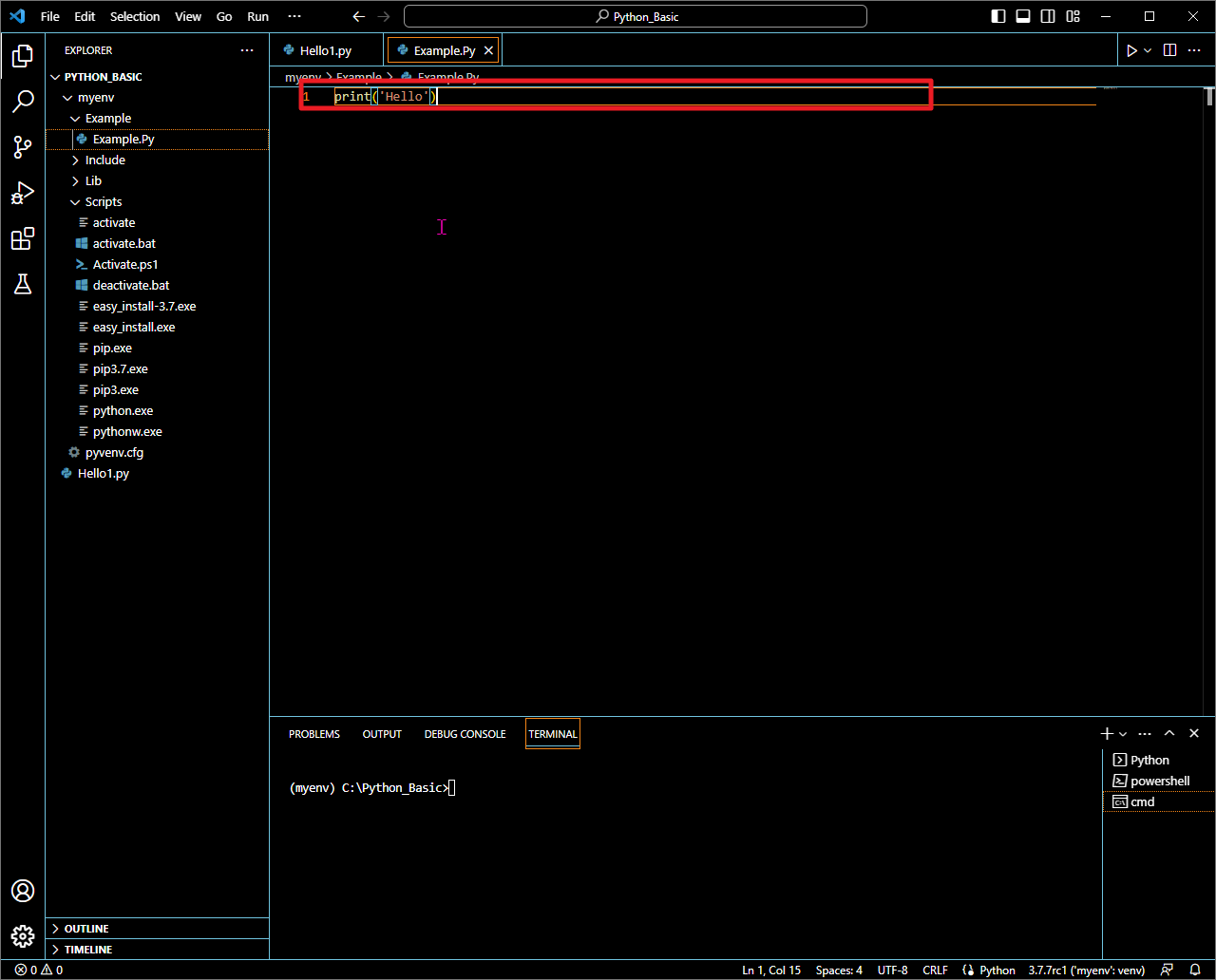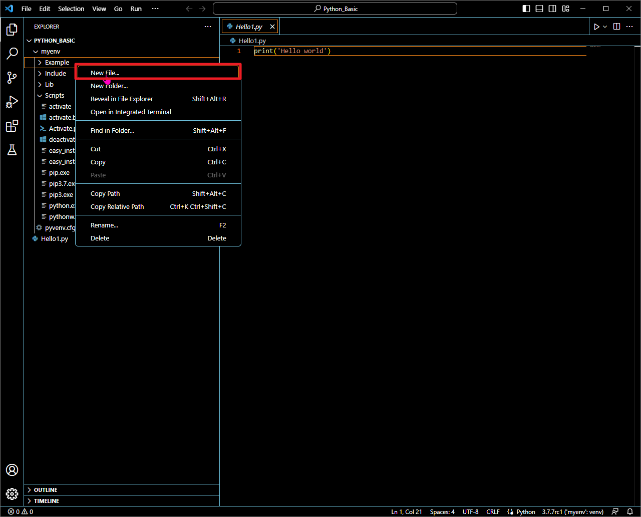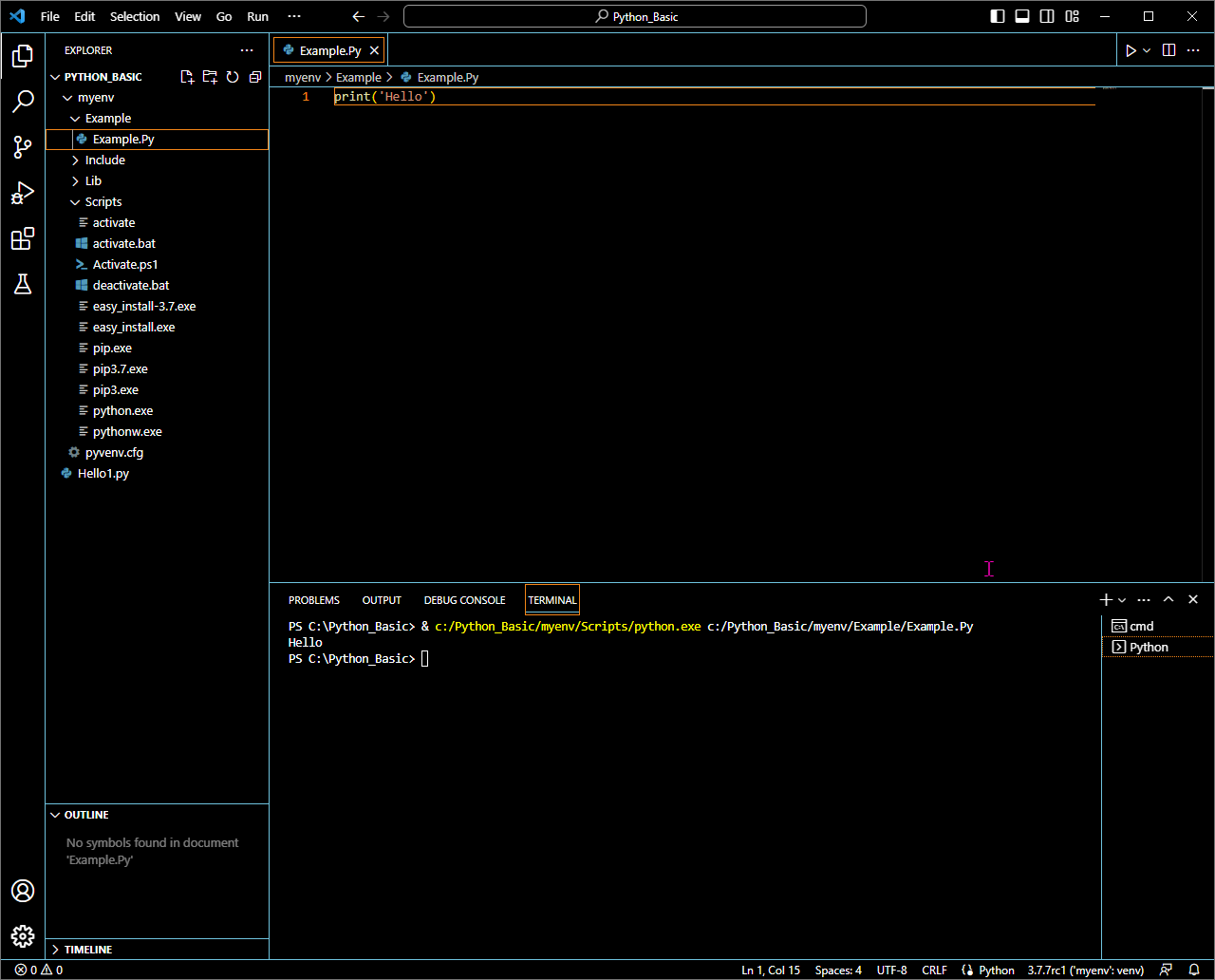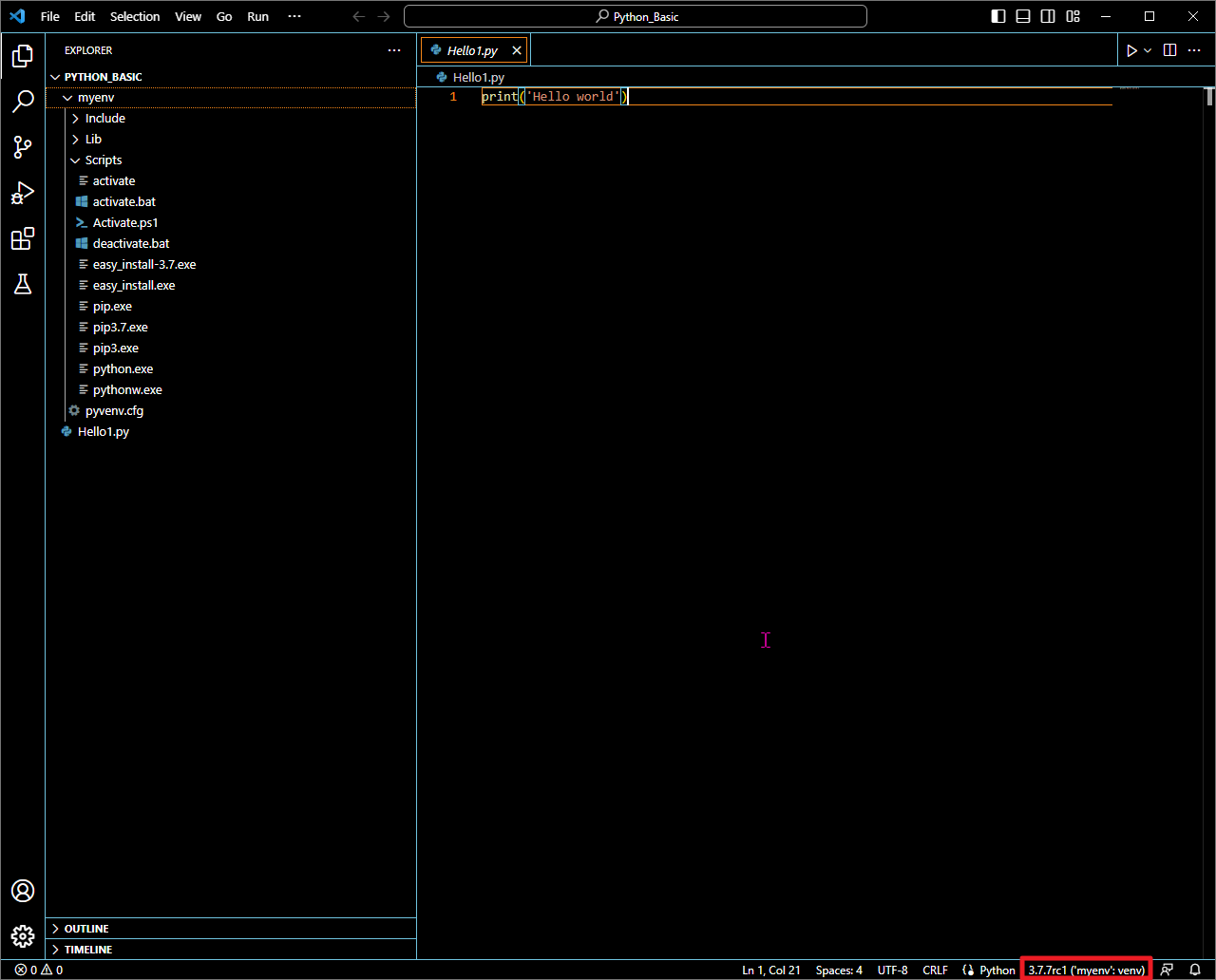 이와 같은 방법으로 가상환경(venv)에서 코드를 작성하고 실행할 수 있습니다.