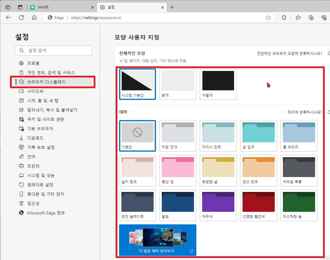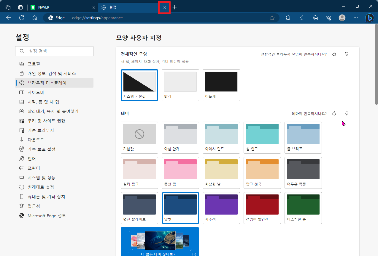 [윈도우11, windows11] 엣지(Edge) 브라우저 탭 테마/색 변경하기