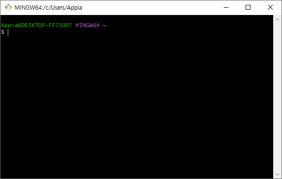 그럼 다음과 같은 MinTTY 터미널 창이 나타날 것입니다. 이 경우에 정상적으로 설치된것을 볼 수 있습니다. 저의 경우 "git --version"을 통해서 제가 설치한 버전이 맞는지 다시한번 확인할 수 있습니다.