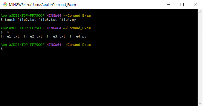 위의 명령어를 통해서 여러개의 파일을 생성할 수 있습니다. 그럼 다음 예시를 살펴보도록 하겠습니다.