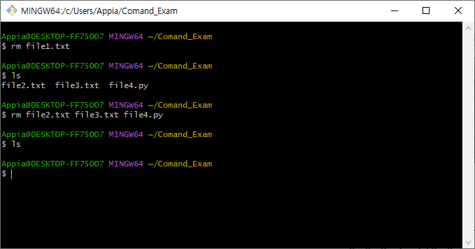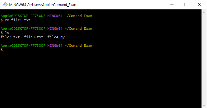 위의 명령어를 통해서 파일을 삭제할 수 있습니다.