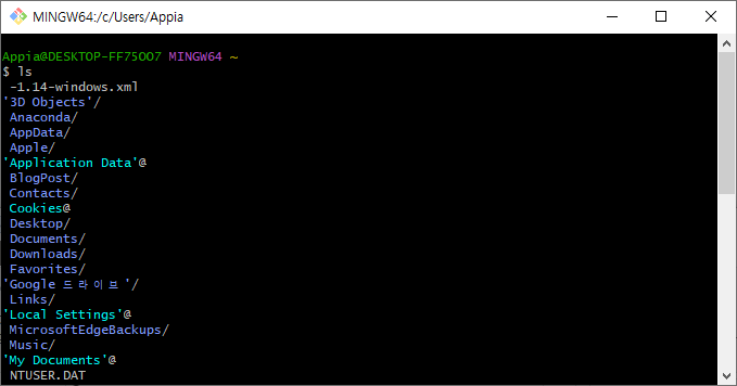 위의 과정의 토대로 Git Bash을 실행하면 다음과 같은 화면이 나타날 것입니다.
