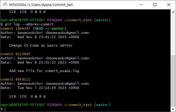 이전 포스팅에서, git의 기본 편집기을 변경하는 방법에 대해서 대해서 알아봤습니다. 이전 부분을 통해서 commit 메시지가 길거나, 많은 내용을 담아야 할 때에, 원하시는 기본 편집기를 사용하기 위한 환경을 설정하는 방법이었습니다. 이번 포스팅에서는 git commit과 관련이 있지만, commit 정보를 입력하는 것이 아니라, commit 정보를 확인하는 방법에 대해서 이야기를 해보고자 합니다. 먼저, 이전 포스팅을 통해서 다음 명령어를 통해서 commit 정보를 확인할 수 있다는 것에 대해서 이미 알고 계실 것입니다.