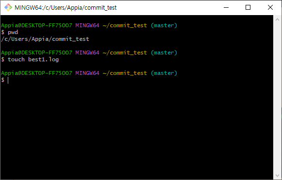 물론, 저는 git bash을 실행하고, 현재 repository가 있는 폴더로 이동하였습니다. 여기에서 다음과 같은 command을 바탕으로 현재 경로를 확인하였습니다.