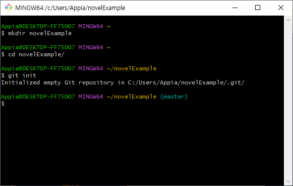 먼저, 앞선 과정까지 했던 방법을 통해서, 저의 경우 새로운 폴더를 생성하고, 이 폴더에 git init을 통해서 repository을 초기화 하도록 하겠습니다.
