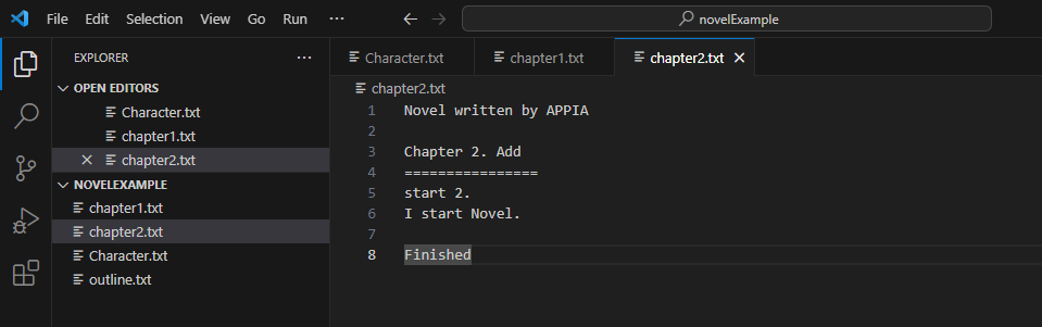 그러면 다시 예제로 돌아와서, 위에서 보이는 그림에 따라서, outline.txt파일을 생성하고, 이 파일에 내용을 채워 놓겠습니다.