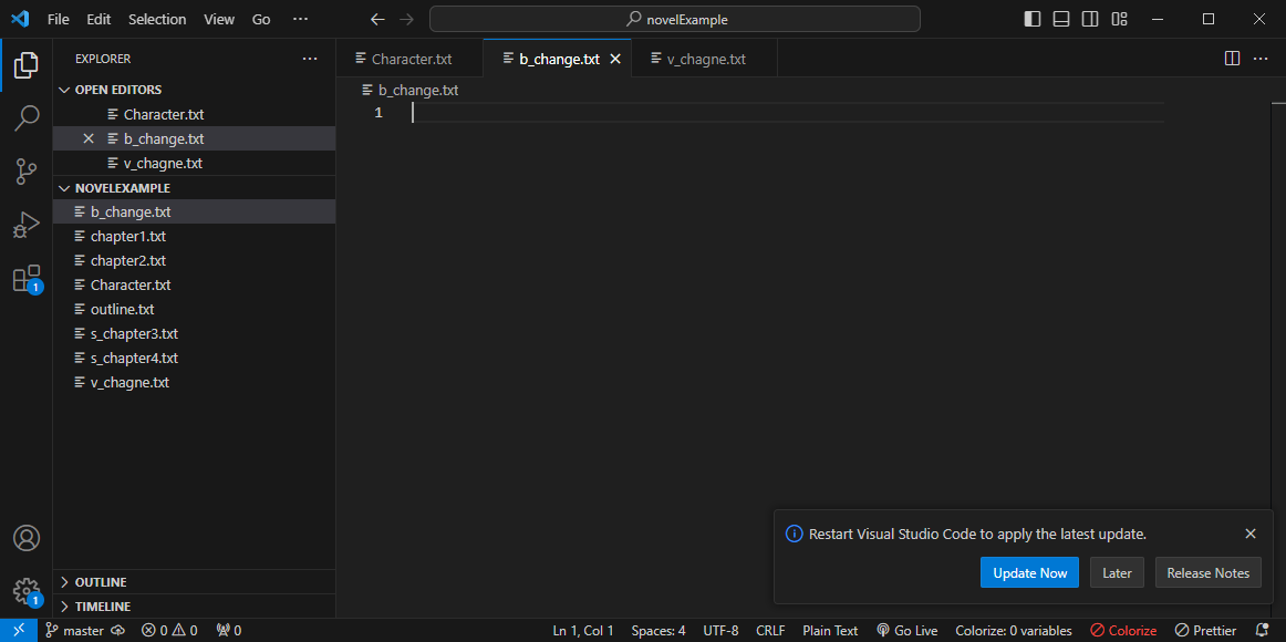 현재까지 commit을 한 파일에 약간의 파일을 수정하도록 하겠습니다. 그리고 나서, 각 파일을 저장해보도록 하겠습니다.