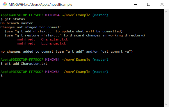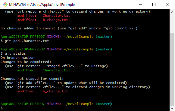 $ git add Character.txt