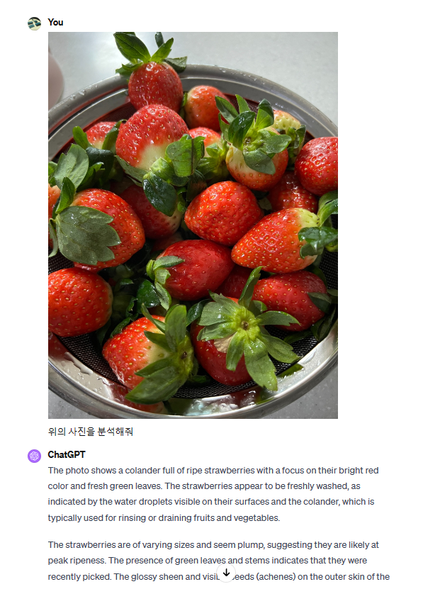 사진의 경우 다음과 같이 사진을 분석할 수 있습니다. 이 부분에 대해서 ChatGPT가 답을 해줍니다. 실제, 토익 스피킹의 사진 분석이나, 표 분석등에 대한 스크립트를 만들 때에 매우 좋을 것이라는 생각도 해봅니다.