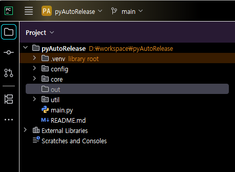 main은 오케스트레이션(흐름 제어)만 담당하고, 실제 동작은 Config/Core/Util 모듈이 맡습니다. 그림 1을 바탕으로 다음과 같은 구조를 생성해보겠습니다.
