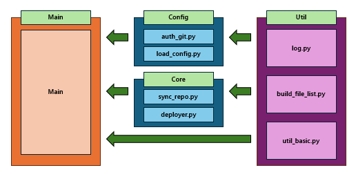 위의 표와 그림에서 혼선이 있을 수 있는 부분이 바로 auth_git.py의 역할입니다. 이 부분은 자격증명 즉, 토큰과 계정에 대한 준비 작업만 진행할 것입니다. Git에 대한 명령 실행은 sync_repo.py에 담당합니다.