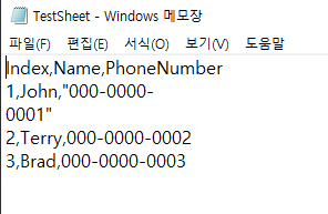 즉 엑셀의 Column부분을 ,(Commna)로 구별하였습니다. 이제부터 CSV 파일 변환을 위해 Excel 파일에 주의 해야할 점들에 대해서 이야기 해보겠습다.