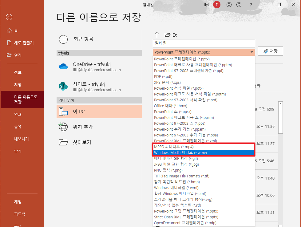 파워포인트 365[PowerPoint 365] 슬라이드 쇼를 동영상으로 만들기