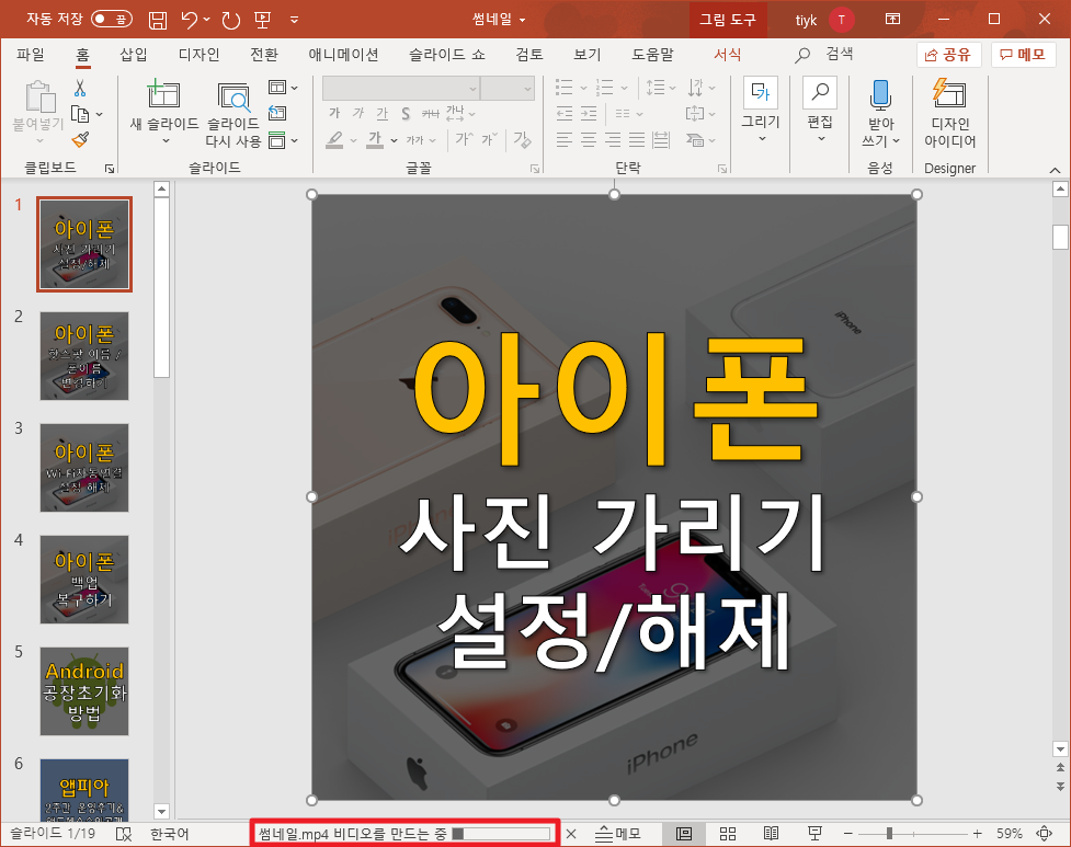 이번 포스팅은 저번에 올렸던 파워 포인트를 이용하여 슬라이드 쇼를 무한 반복 부한 재생하는 방법에 대해서 포스팅을 한적이 있습니다. 이번에는 파워포인트를 바탕으로 슬라이드 쇼를 동영상으로 만드는 방법에 대해서 이야기를 해보고자 합니다.