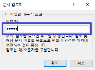 여기까지 끝내시고 나서 반드시 저장을 눌려주시길 바랍니다. 그런 후에 이 파일을 다시 열면 다음과 같이 암호를 확인하는 화면이 나타납니다.